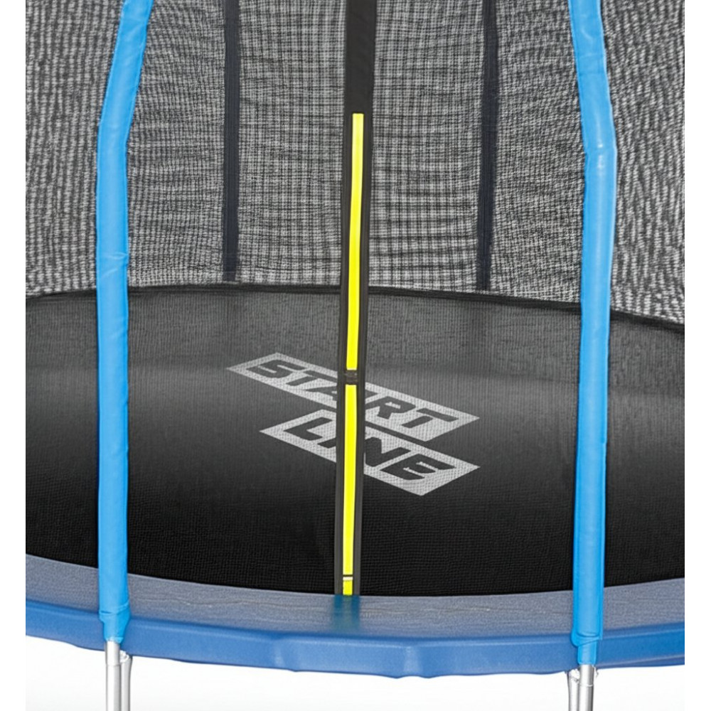В месте с батутом устанавливается защитная сетка. Сетка изготовлена из нейлона, который обладает высокими характеристиками прочности. Зайти и выйти на батут можно через специально оборудованный в сетке проход, который сделан с помощью молнии и зафиксирован снаружи кнопками.