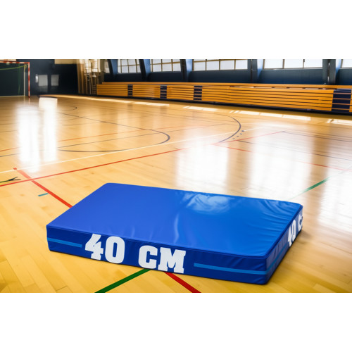 Зона приземления для прыжков размером 2000х1000х400 мм выполнена из винилискожи с наполнителем из ППУ (поролона), обеспечивая высокую степень безопасности при использовании.