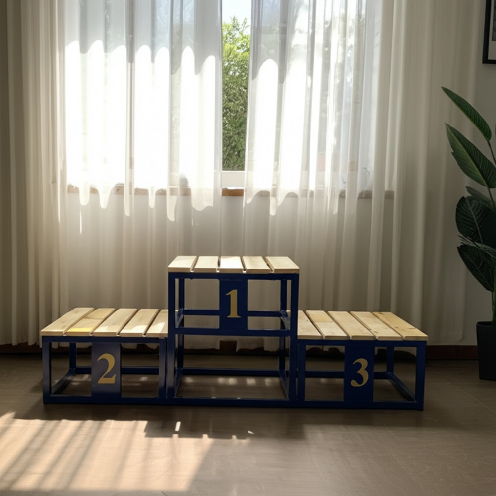 Этот модульный пьедестал идеально подходит для вручения наград спортсменам, занявшим первые три призовых места на различных соревнованиях.
