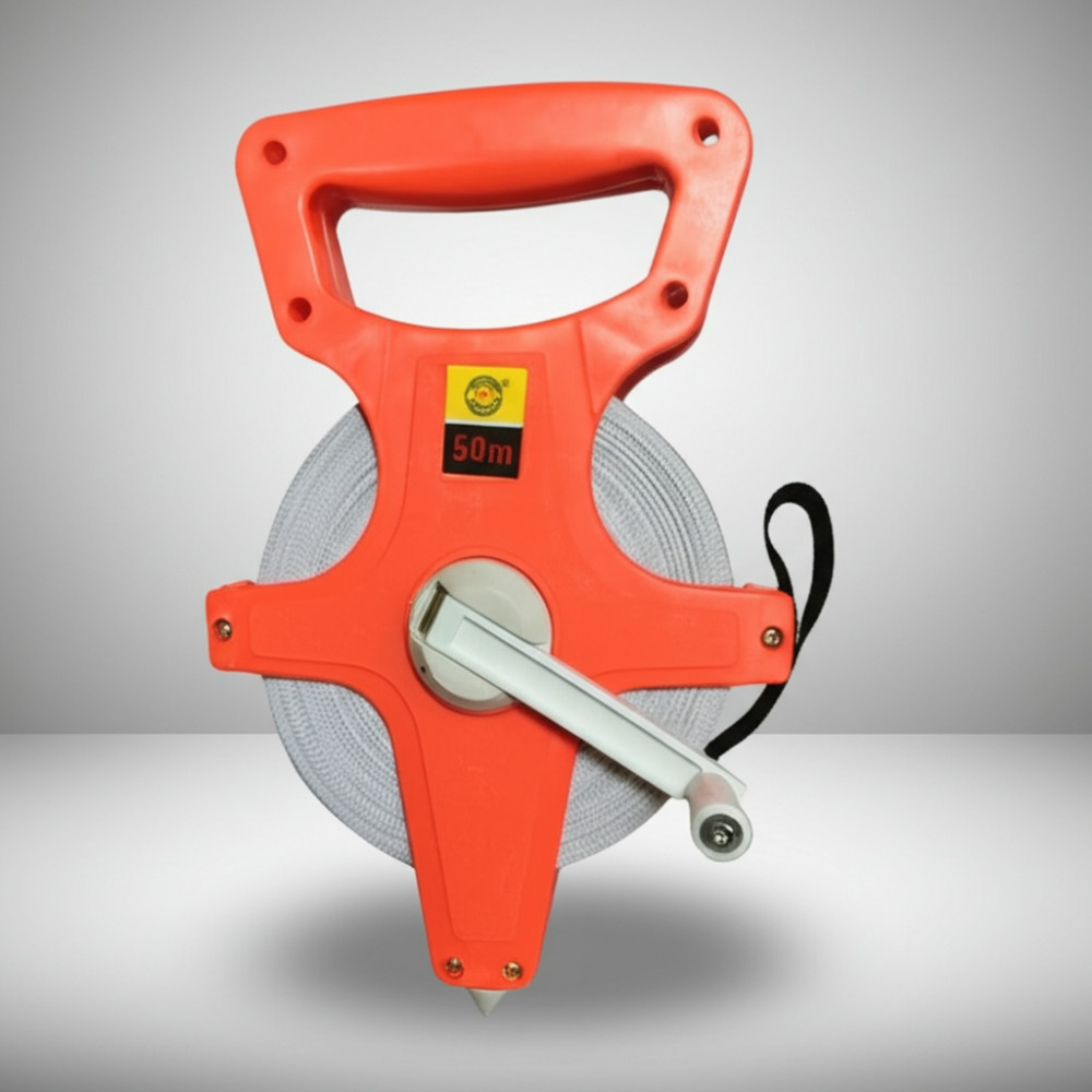 Спортивная рулетка с ручкой, длиной 50 метров, применяется не только в соревнованиях, таких как футбол и прыжки в длину, но и для разметки площадок и стадионов. Данная модель обеспечивает точность измерений и удобство в использовании.