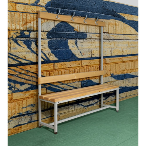 Скамейка с вешалкой для раздевалки длиной 1 метр - функциональный элемент для спортивных и общественных заведений, обеспечивающий комфорт и удобство.