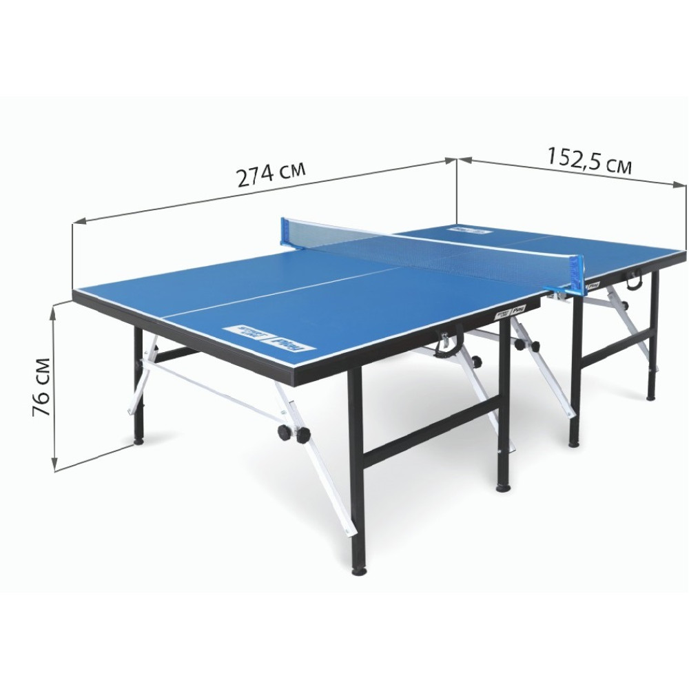 Теннисный стол Play - это компактная и мобильная модель, отвечающая стандартам настольного тенниса с размерами 274 x 152,5 x 76 см в развернутом виде.