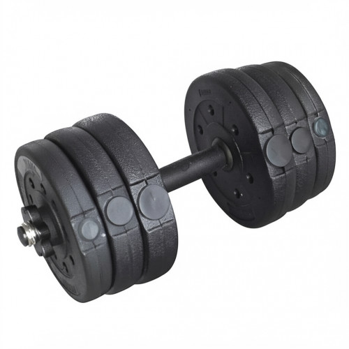 Набор разборных гантелей с общим весом 25 кг, включает две гантели по 12,5 кг каждая, выполненные из цемента и пластика.